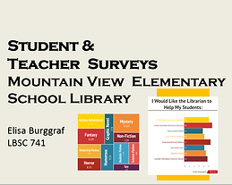 Two surveys were created for Mountain View Elementary under the direction of the Library Media Center's school librarian. The school librarian was particularly interested in gathering information about collaboration from the teachers and from the students, she wanted to know what electronic devices they had access to at home and what genres, topics, and authors they like to read.